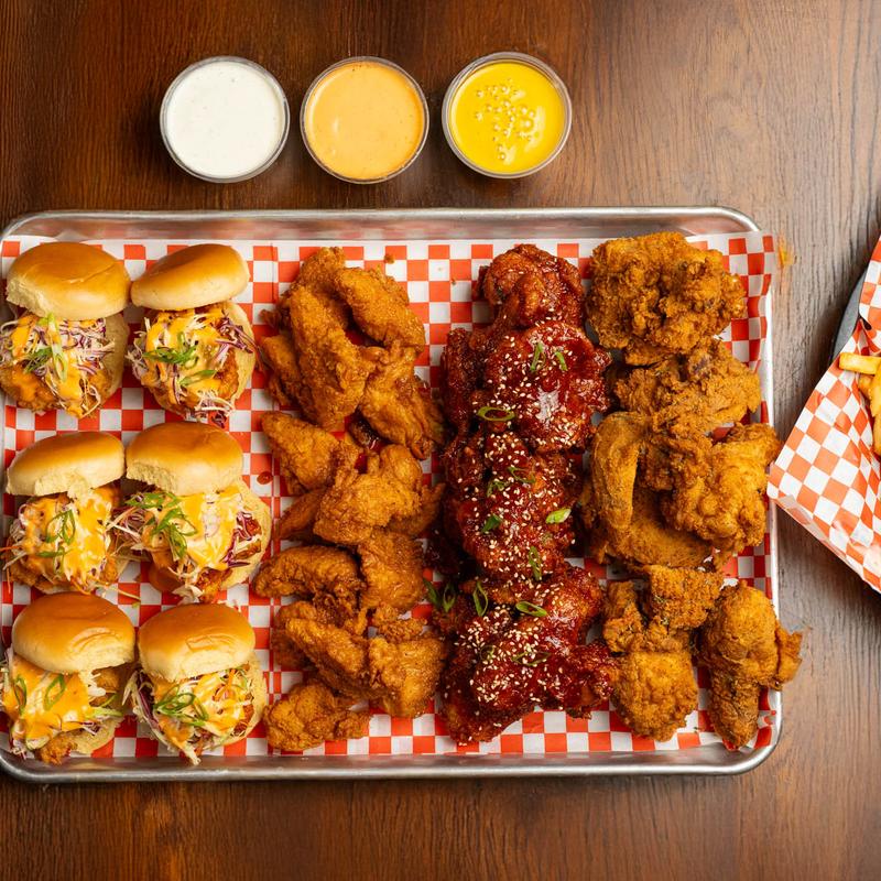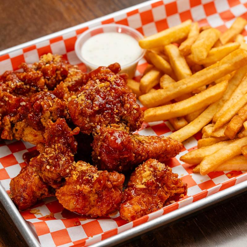 Korean fried chicken inspired. Experience the satisfaction of our perfectly brined, made to order, hand breaded, double fried chicken resulting in a crispy exterior and juicy interior unlike any other. All our flavors are wet, made from scratch, in-house. Have your chicken hand tossed in one of our signature flavors!