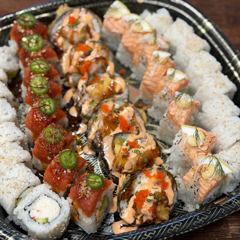 A beautiful assortment of freshly hand-rolled sushi, perfect for any gathering, crafted by Chef Mai Takase. Our platters offer vibrant, high-quality ingredients: premium sushi rice, fresh vegetables, and premium graded seafood.